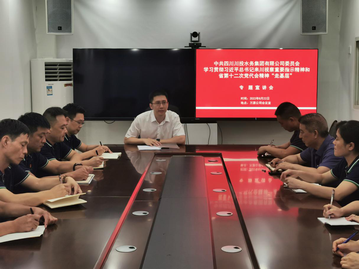 根據(jù)川投水務(wù)集團(tuán)黨委《關(guān)于認(rèn)真做好學(xué)習(xí)貫徹習(xí)近平總書記來川視察重要指示精神和省第十二次黨代會(huì)精神“走基層”專題宣講的通知》統(tǒng)一安排部署,8月23日,川投水務(wù)集團(tuán)黨委委員、副總經(jīng)理嚴(yán)斯亮來到萬源公司開展專題宣講活動(dòng)。