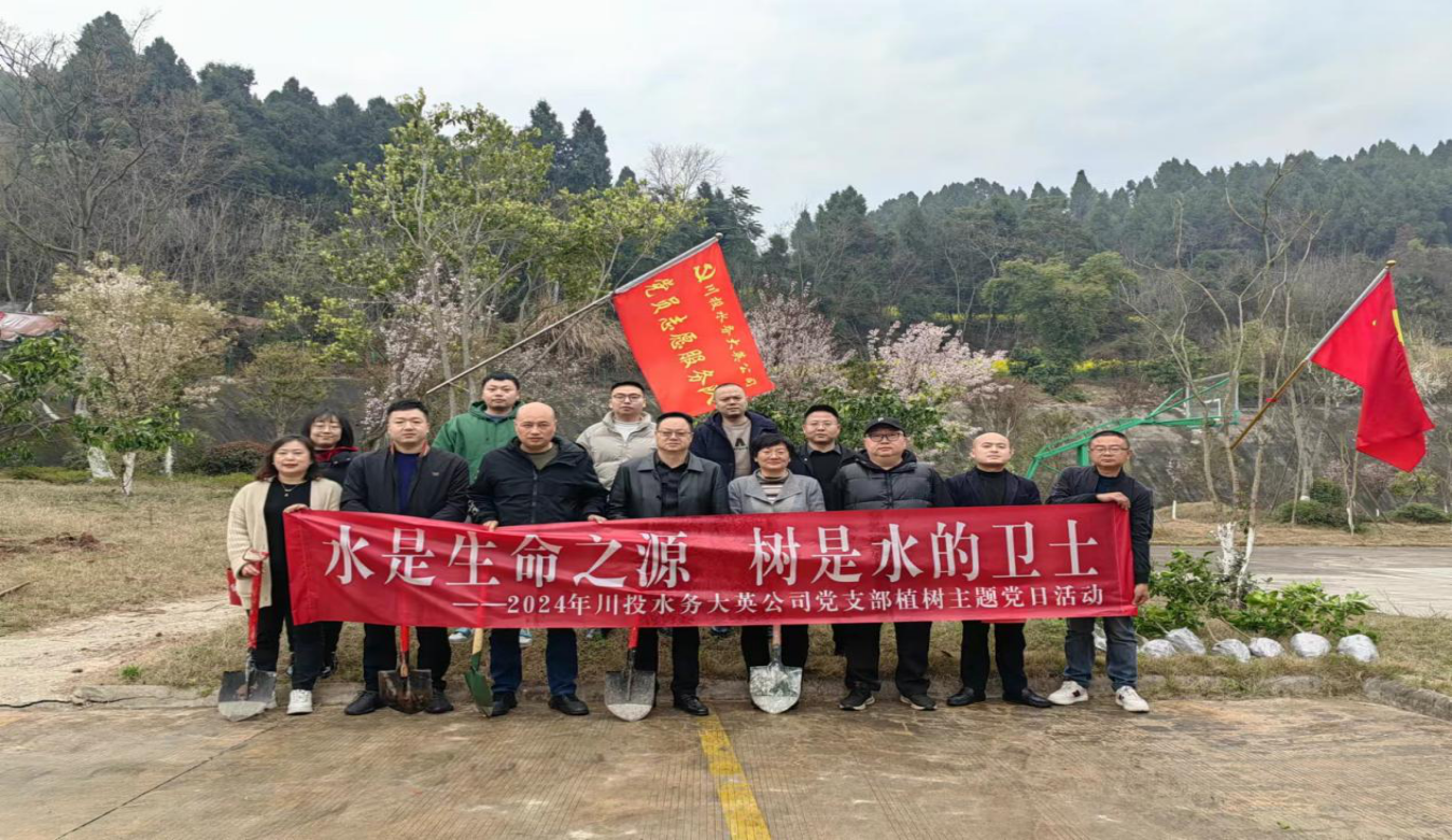3月12日,春暖花開(kāi),也是我國(guó)第46個(gè)植樹(shù)節(jié),植樹(shù)添綠正當(dāng)時(shí)。為踐行“綠水青山就是金山銀山”的綠色發(fā)展理念,宣揚(yáng)環(huán)保精神,引導(dǎo)廣大黨員干部職工參與到植樹(shù)的行動(dòng)中來(lái),為大自然增添新綠,樹(shù)立“植綠、愛(ài)綠、護(hù)綠”的生態(tài)文明新風(fēng)尚。川投水務(wù)大英公司黨支部組織黨員志愿者、青年職工代表在大英公司新苗水廠開(kāi)展“水是生命之源 樹(shù)是水的衛(wèi)士”植樹(shù)主題黨日活動(dòng)。主題黨日活動(dòng)由川投水務(wù)大英公司黨支部書記、執(zhí)行董事、總經(jīng)理王文川主持,副總經(jīng)理、工會(huì)主席王洪先參加活動(dòng)。