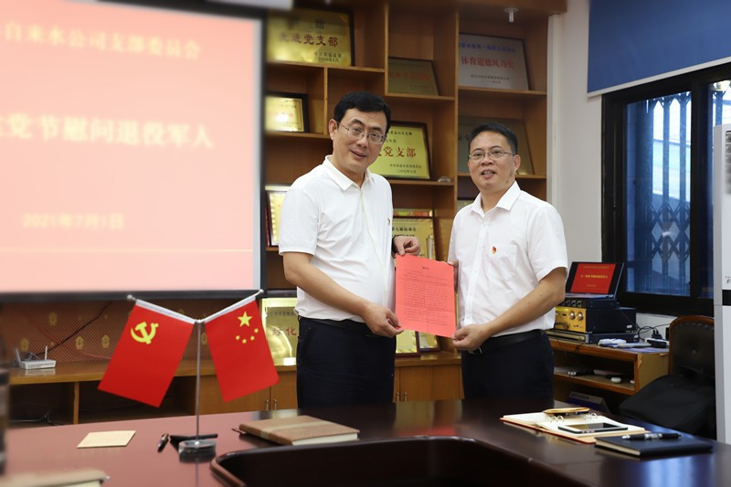 隨后,公司組織開(kāi)展了黨支部書記講黨課活動(dòng),由榮縣水司支部書記、執(zhí)行董事、總經(jīng)理龔慶主持親自授課,黨課的主題為“感黨恩 聽(tīng)黨話 跟黨走”及“辦實(shí)事 開(kāi)新局”。龔慶對(duì)習(xí)總書記在慶祝大會(huì)上的講話進(jìn)行了再次傳達(dá)學(xué)習(xí),并肯定了全體黨員及退役軍人整體形象好、講政治、有覺(jué)悟,在各自的崗位起到了先鋒模范作用,不負(fù)黨員和退役軍人的光榮稱號(hào),對(duì)公司發(fā)展做出了積極貢獻(xiàn)。龔慶同時(shí)提出三點(diǎn)要求:一是黨員和退役軍人要居安思危,增強(qiáng)憂患意識(shí),常懷憂黨之心,恪盡興黨之責(zé),以忠誠(chéng)于黨和人民的事業(yè)為天職,自覺(jué)地?fù)?dān)當(dāng)起實(shí)現(xiàn)國(guó)家富強(qiáng)和人民幸福的歷史使命。二是要提高政治站位、堅(jiān)定理想信念,做到旗幟鮮明講政治,堅(jiān)持學(xué)習(xí)、追求進(jìn)步,用黨的科學(xué)理論武裝頭腦,時(shí)刻保持干事創(chuàng)業(yè)的強(qiáng)大動(dòng)力。三是要堅(jiān)持中國(guó)共產(chǎn)黨為人民服務(wù)的宗旨,供水關(guān)乎民生,連接千家萬(wàn)戶,作為黨員和退役軍人,要恪盡職守、沖鋒在前,不斷提升服務(wù)質(zhì)量,做好安全穩(wěn)定供水工作。